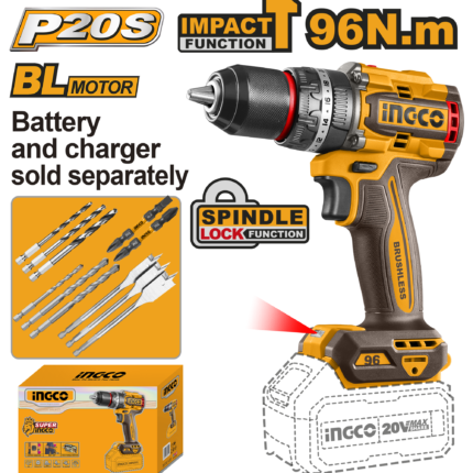 R3,401Ingco – Compact Brushless Cordless Imapct Drill 20V – 96Nm – Unit Only