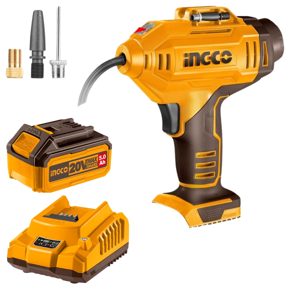 Ingco – Cordless Auto Air Compressor with 5Ah Battery & Charger – CACLI2018+FCLI2001+FBLI20031