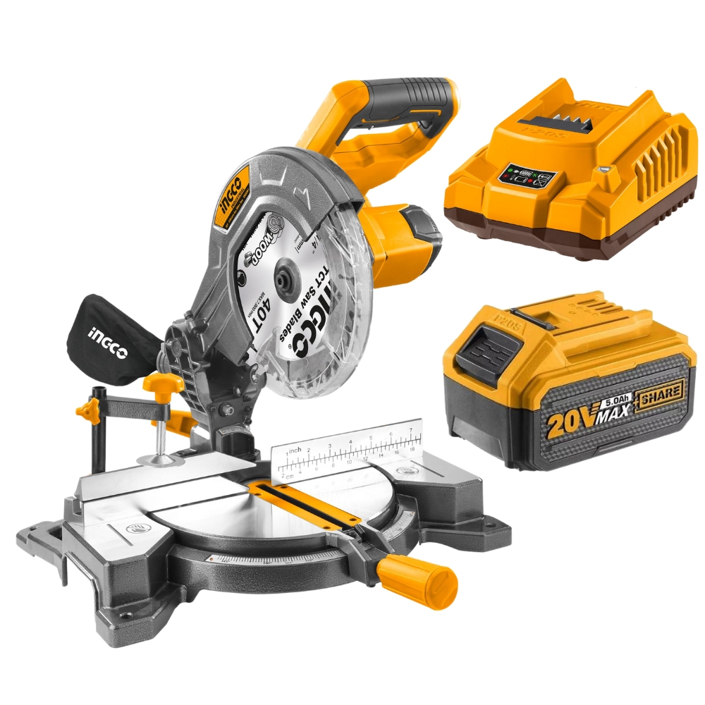 Ingco – Cordless Li-Ion Mitre Saw – (20V) With 5.0Ah Battery And Charger