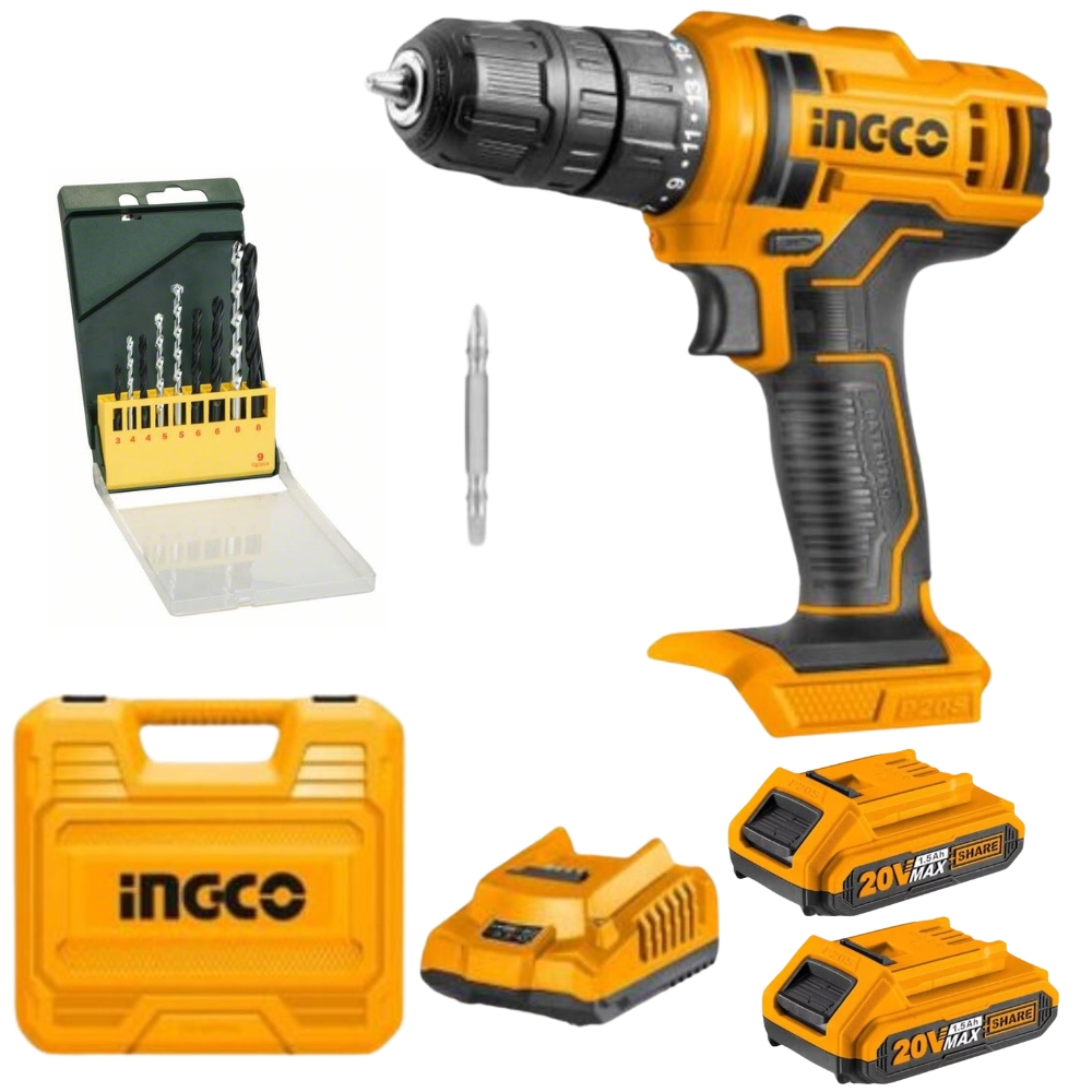 Ingco – Li-Ion Cordless Drill With 9 Pc Drill Set – Hss-R Metal – Masonary