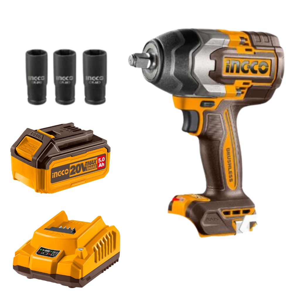 Ingco – Li-Ion Impact Wrench (20V) – 850Nm With 5Ah Battery & Charger