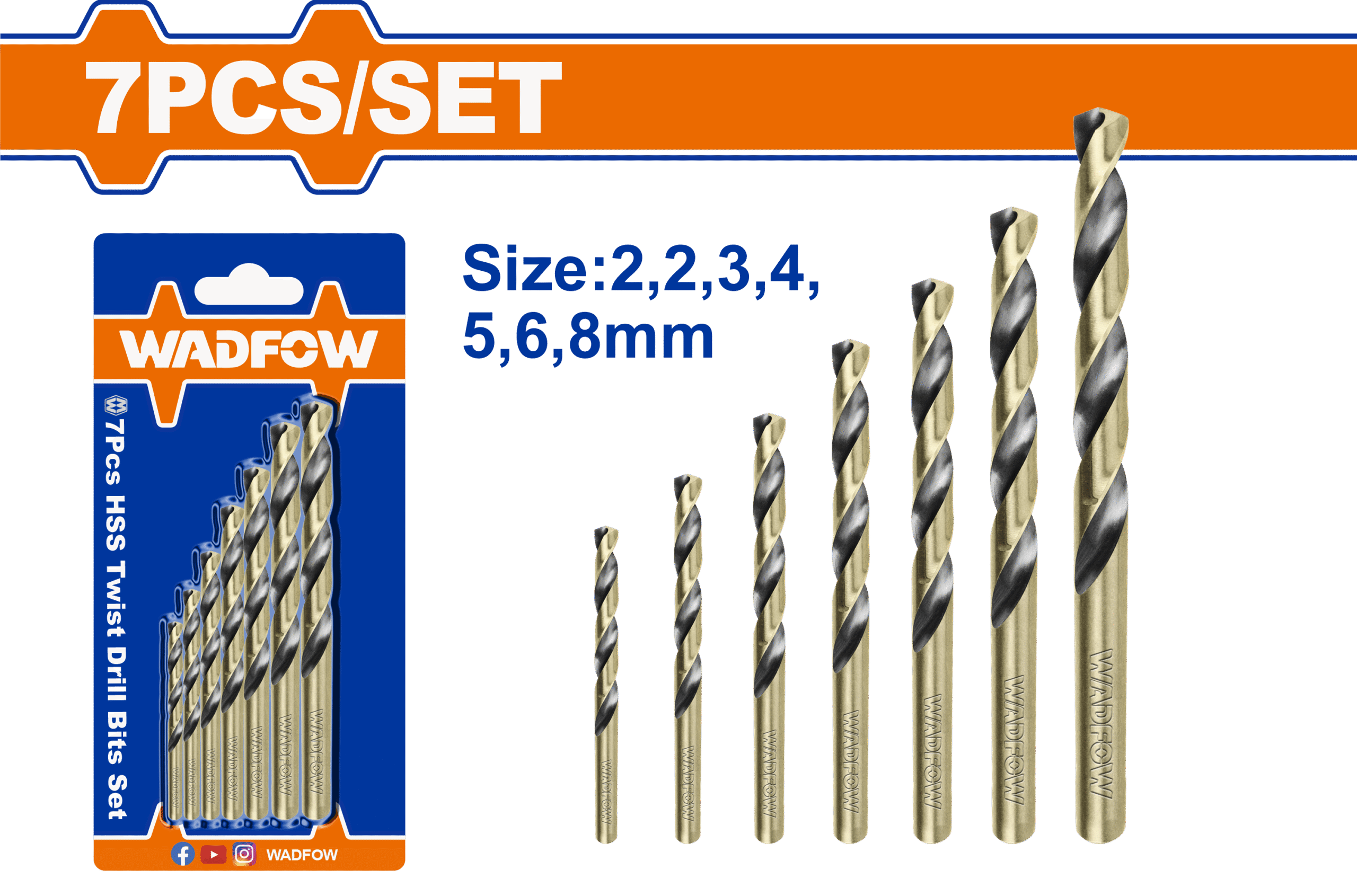 Wadfow – 7 Piece Hss Twist Drill Bits Set
