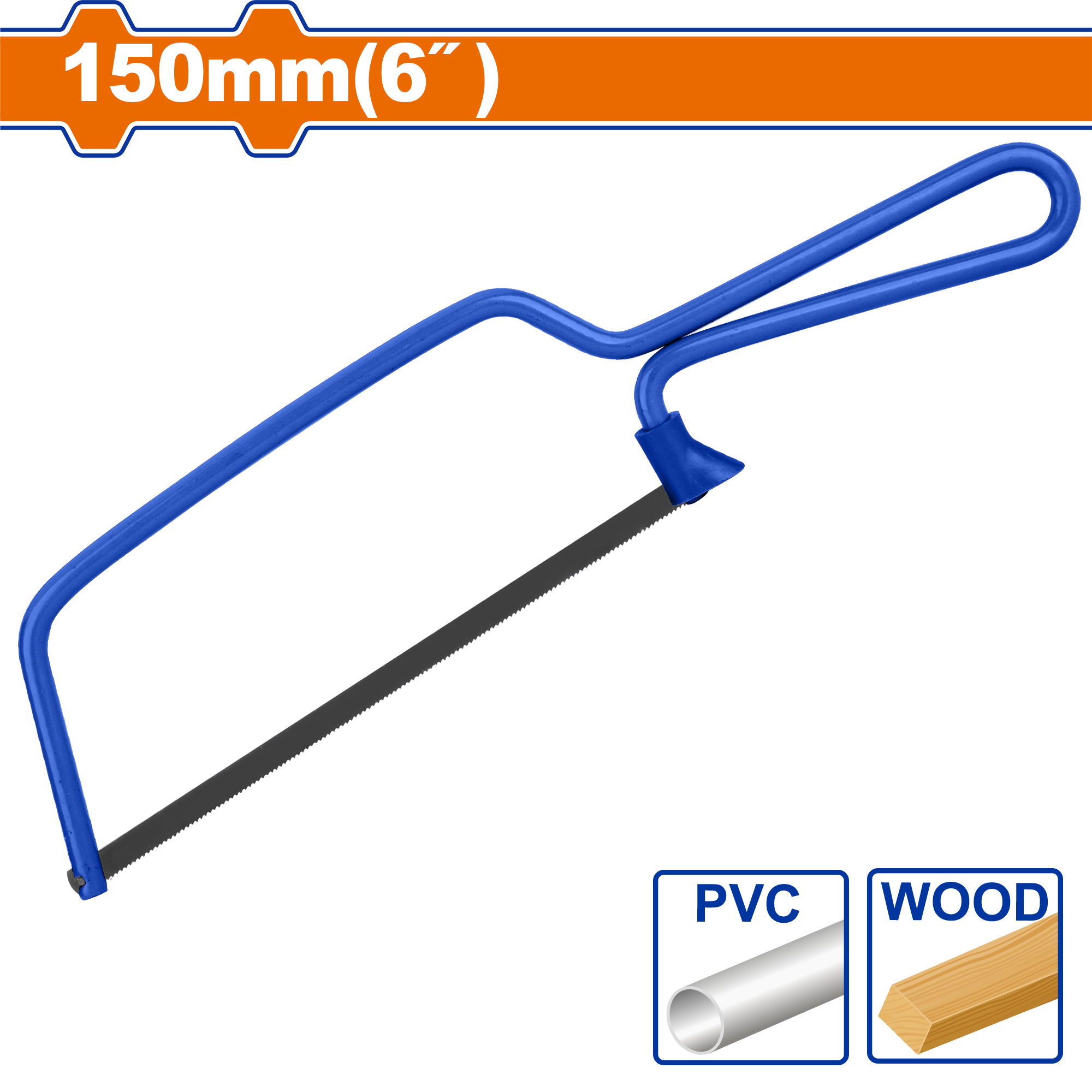 Small hacksaw frame for universal use Packed in paper card.