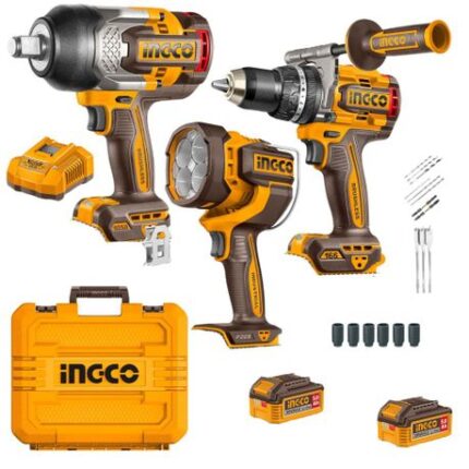 R2,049INGCO – Cordless Impact Drill, Impact Wrench And Work Lamp Combo Kit