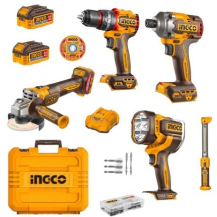 R1,609INGCO – 5 Peice Combo Angle Grinder Impact Driver Impact Drill And Lamp