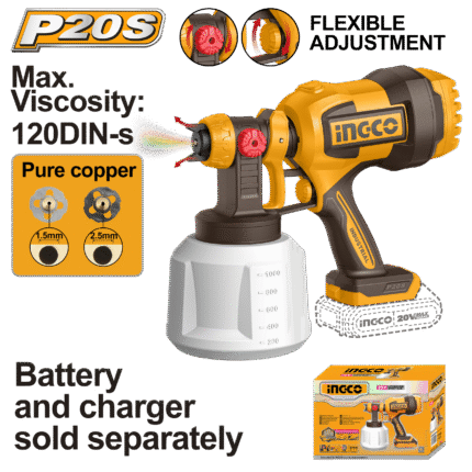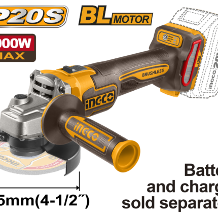 Ingco – Cordless Angle Grinder 20V (900W Max) With 4Ah Battery And Charger