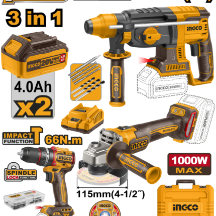 R115Ingco – Impact Drill, Grinder, Rotary Drill With 2X 4Ah Battery And Charger